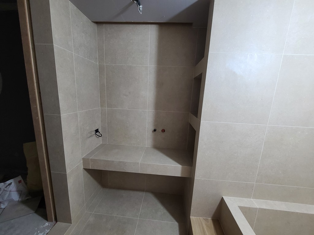 타일공 작업일기 – [광교 이편한세상 테라스] 고급스러운 타일 선반과 타일 욕조로 꾸민 욕실, 대형타일로 벽바닥 전부 리모델링한 타일시공 (220510)