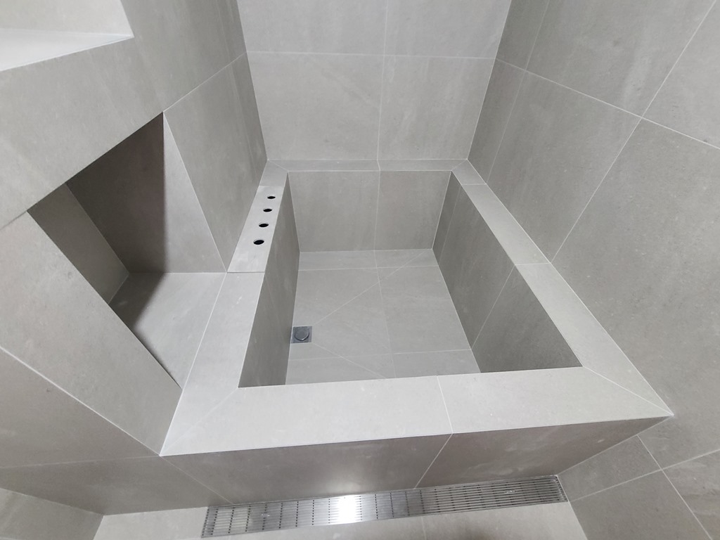 타일공 작업일기 – [판교 원마을 9단지 아파트] 타일욕조, 타일선반이 구성된 욕실, 1200 x 600 각 포쉐린타일로 전체 바닥 타일시공 (220424)